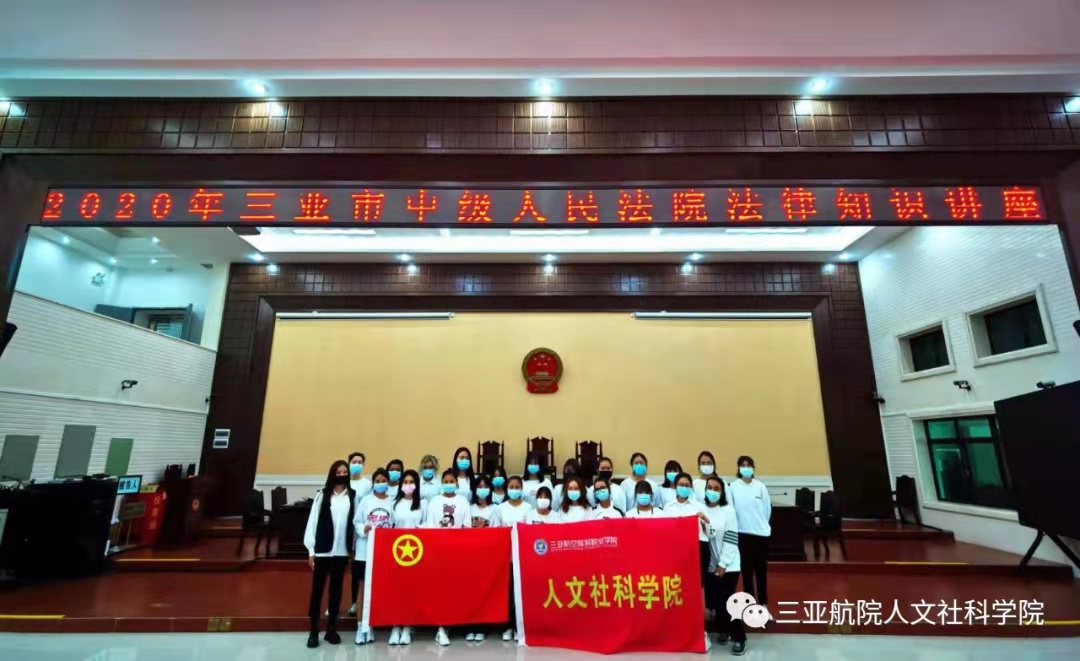 为进一步强化学生法治观念,强化懂法守法自觉,2020年12月11日,人文社科学院组织应用英语2001班学生参加了三亚市中级人民法院“法院开放日”活动,旁听四宗刑事案件庭审现场,聆听学习法律知识讲座,了解法院在打击新型犯罪、重刑犯罪、黑社会犯罪方面最新举措。