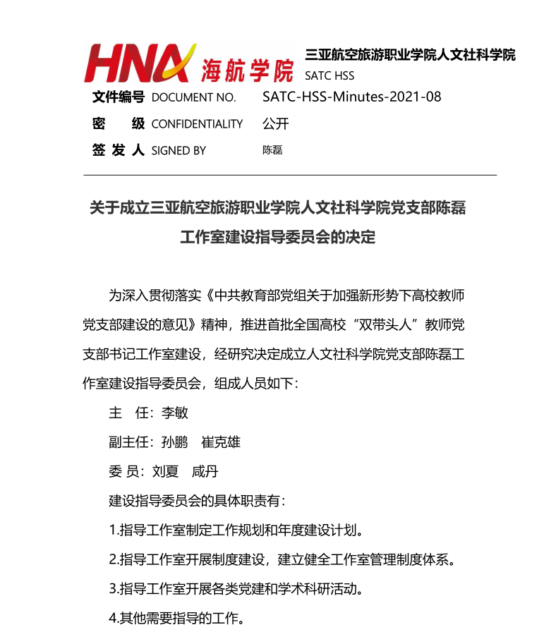 下一篇:关于成立三亚航空旅游职业学院人文社科学院党支部陈磊工作室工作领导小组的决定