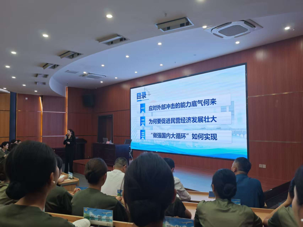 王书记结合课件内容,从“基础稳、优势多、韧性强、潜能大”四个方面,系统阐述了中国经济在复杂外部环境下的发展底气和应对能力,强调我国具有完整的产业体系、超大规模市场、丰富人才资源等多重优势。